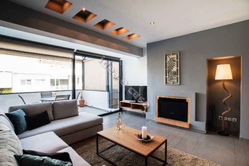 Fully furnishedand equipped apartment duple 105 sq m 3th plus 4th floor, minimal yet modern design. Consists of comfortable n living room a dining room and a kitchen, with plenty of sunlight and large balconies with a view. It also has 2 bedrooms. The property is located in picturesque and quiet neighborhood in Marousi, close to the business and commercial center of the area.It should be noted there is easy access to the metro-station, International schools and Attica Highway.