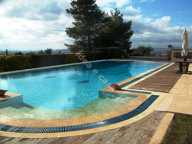 luxurious and modern detached house,700 sq m, where was designed immaculately.Constructed in 2003, the residence is situated in a 4500 sq/m property. With a football field, a swimming pool and exceptional garden . The house is fully air-conditioned with under floor heating and a security system installed. Open spaced with great panoramic view, the residence is divided in 3 levels. Consists of a spacious reception room, a beautiful living room with a fireplace and a large, fully equipped kitchen. On the same level there is a guests’ bathroom and a personnel room. It also has 5 bedrooms one of which is a master with en-suite bathroom an a walk-in closet . A distinguishing characteristic of this dwelling, is its fine wooden floors (oak), which create a very warm and welcoming atmosphere throughout the house. The property is located in the most elegant area of Penteli (Palia. It should be noted that there is easy access to the metro-station and Attiki Highway.